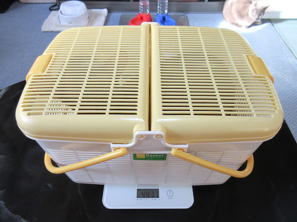 そしてこれは、おとといの朝にしたアビのすけの体重測定の様子。