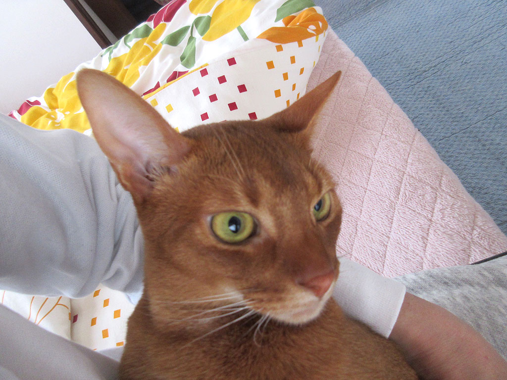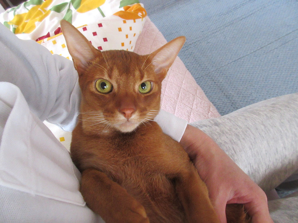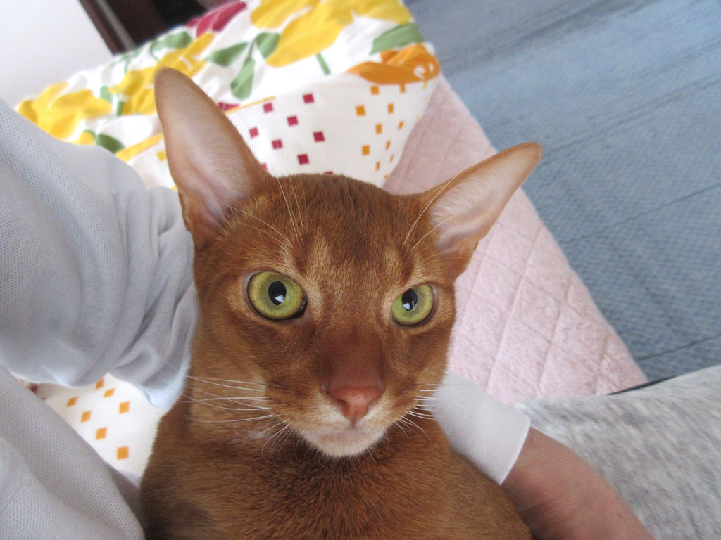 でも、このアビシニアンのやんちゃ坊主は、何を考えているのかがとっても分かりやすくて、私の隙を見て、逃げるタイミングを見計らっているアビのすけの心の底が見え見えで…。(笑)