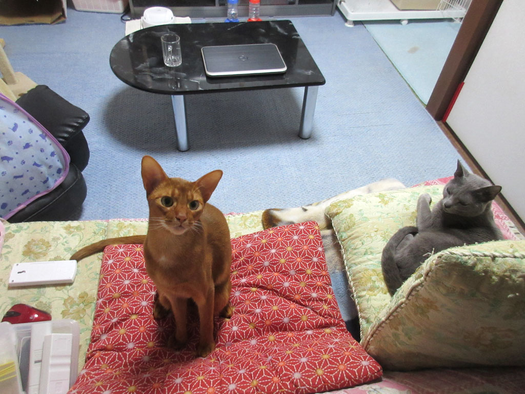 私が立ちあがると、さっきまでウトウトしてたのに、私が何をしているのか、絶対に確認しに来るアビのすけ…、好奇心の塊やなぁ〜…。