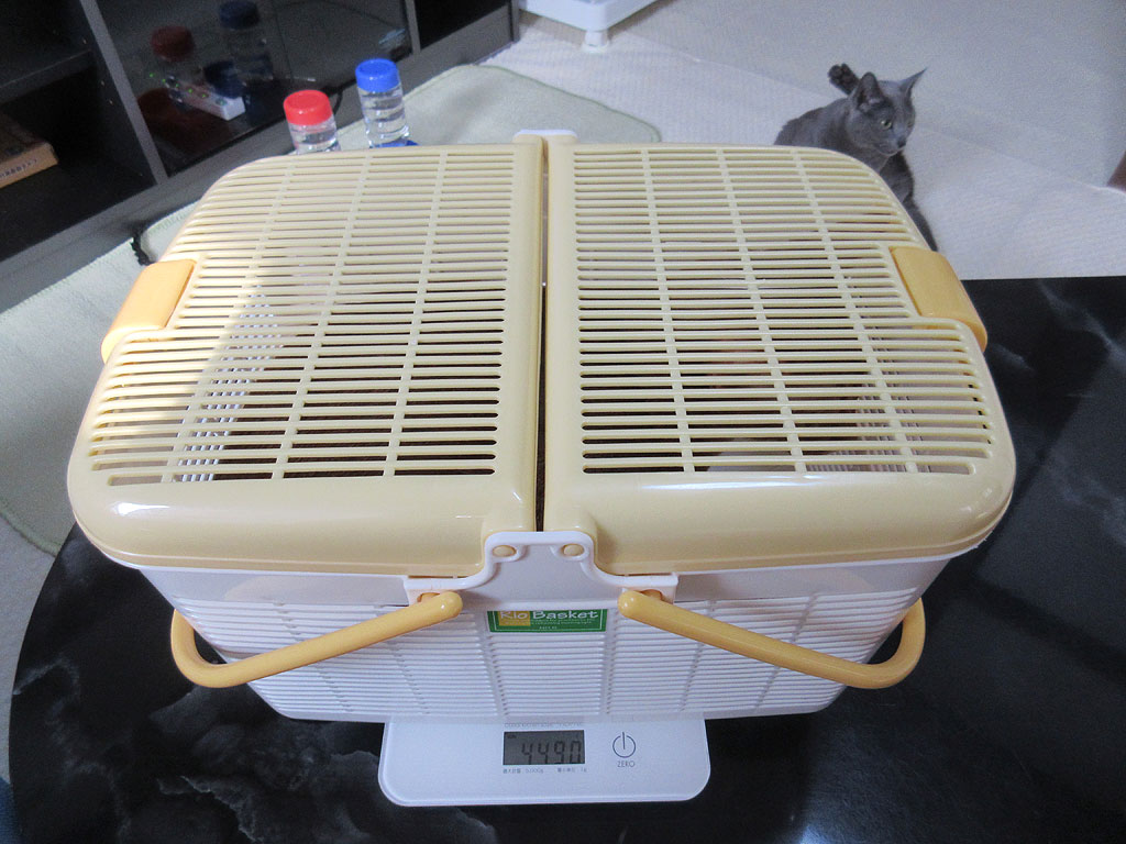 そしてこれは、おとといの(水)にした、アビのすけの体重測定の様子。