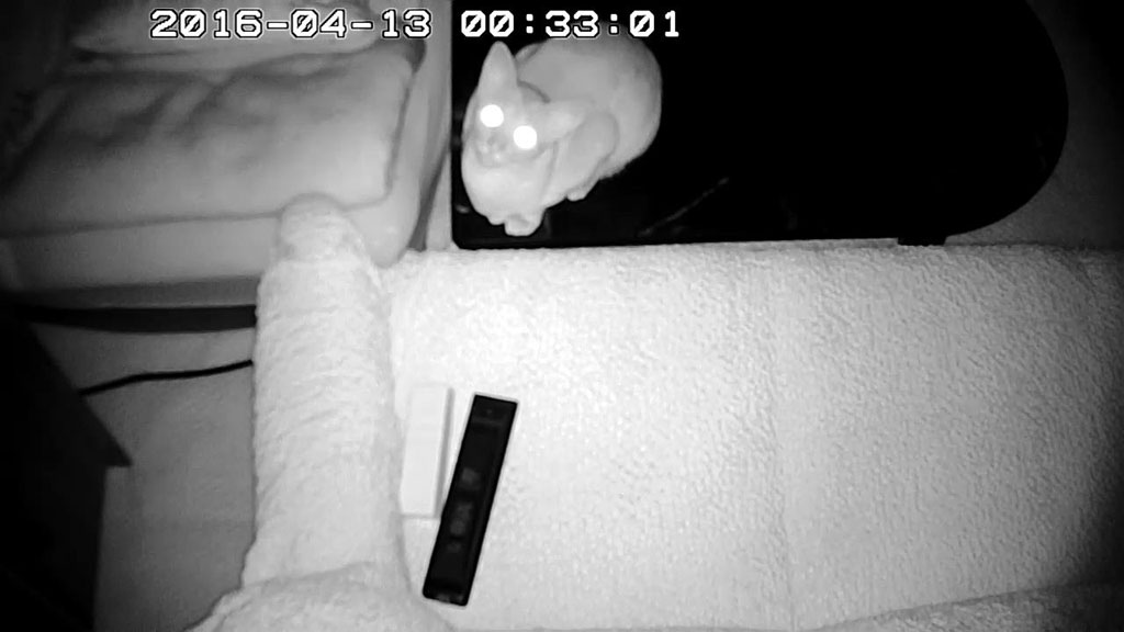 晩、すやすやと寝てるかなと思って、Webカメラで猫たちの様子を確認したら、アビのすけは目を爛々と輝かせていましたよ…、と言うか、赤外線カメラに反応して、光っているだけですけどね…、夜行性なアビのすけ君…。