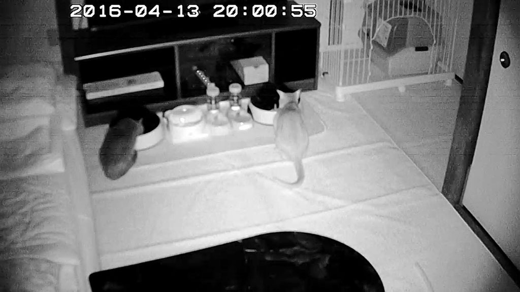 そしてこれは、今日の晩ご飯を食べる猫たち…、昨日の昼ご飯の時と晩ご飯の時に、自動給餌器が間違いなく動いていた事は確認していましたが、今日もきっちりと動いてくれて、自動給餌器くん、有難う…!