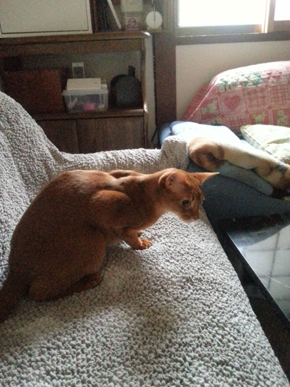 お家でお留守番…、昨日と今日のアビのすけの様子です。