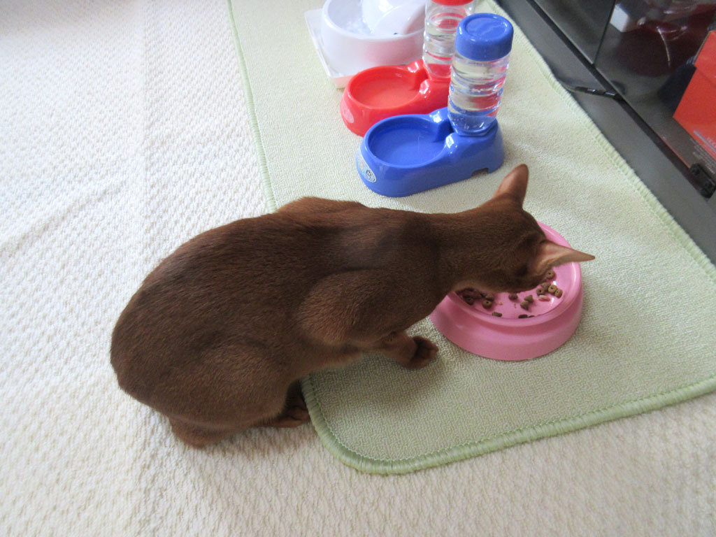 朝ご飯を食べるアビシニアン。そしてこれはおとといの事ですね…、朝ご飯を食べているアビのすけの様子です。