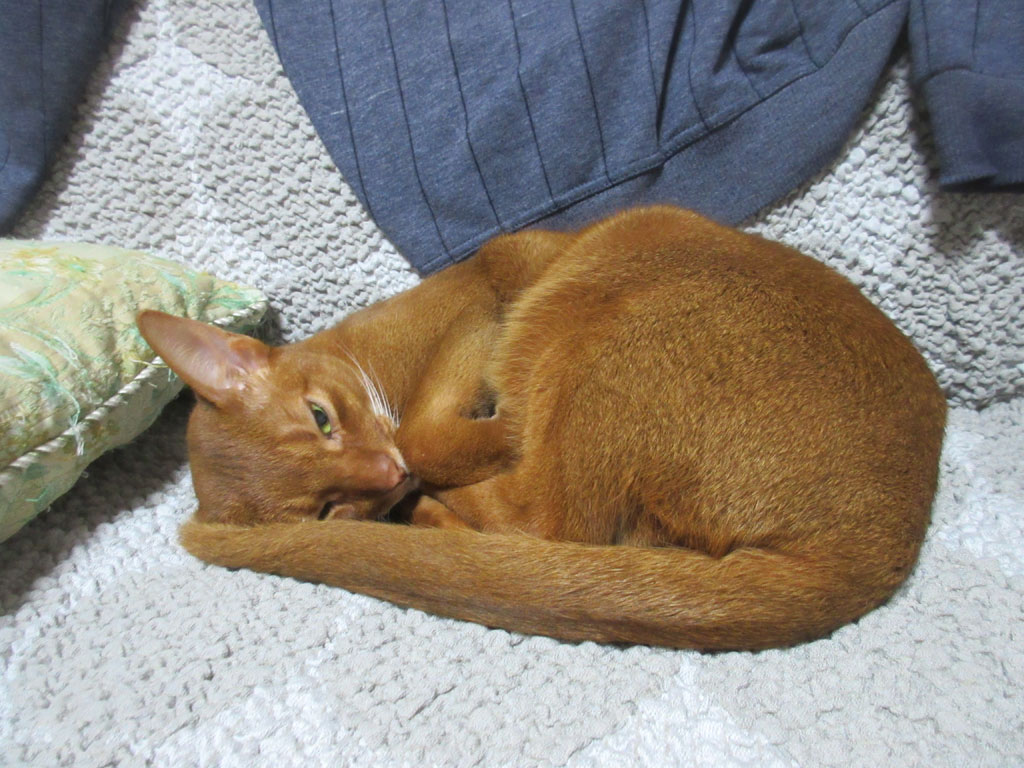 3日程前だったか、たまたまアビのすけがソファーの下に潜り込んでいなかったので、アビのすけをベットに連れて行ったら、その翌日からはソファーの下には潜り込まずに、私から見える所にいたアビのすけだったのです…、かまって欲しいんかい…、分かりやすい奴…。(笑)