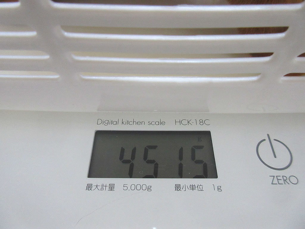 先々週が4,517gで、先週が103g増えて4,620g…、そして今週は105gも減って4,515gって、一体、どーゆー事…!?