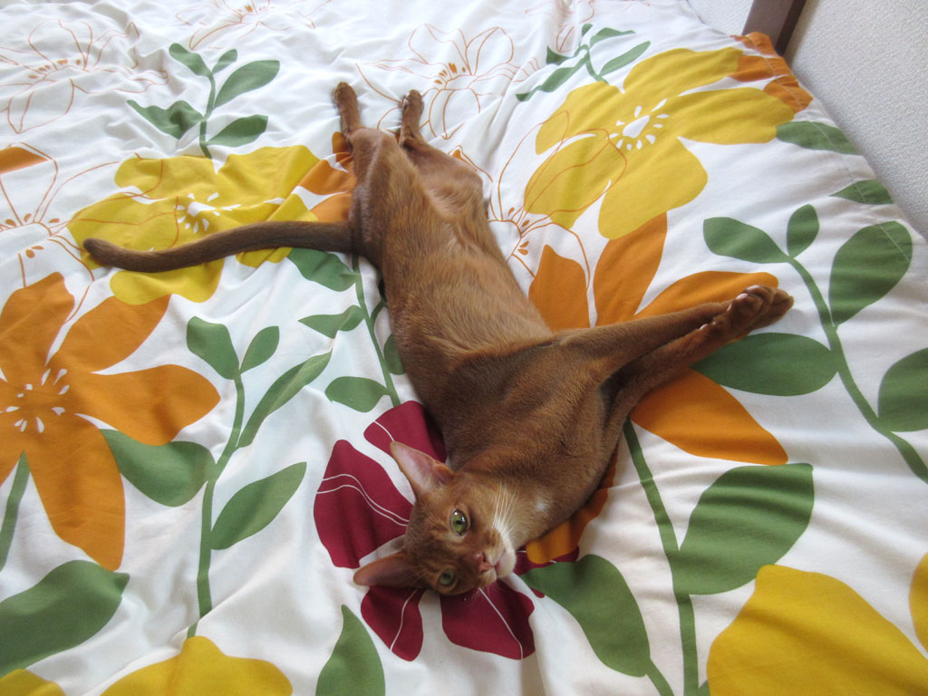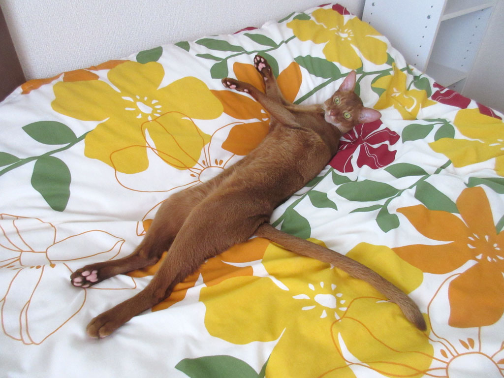 明らかにアビのすけも暑い素振りを見せて寝てましたが、耐えられる範囲なのかなぁ〜…、人間的には辛い暑さなんだけど…。