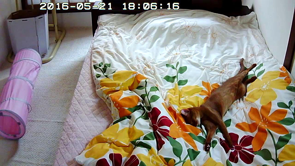 ロシ子がこんな格好で寝ている事はないので、これは男の子特有の寝方なのかな…、ほんと、やりたい放題のアビのすけ君です。(笑)