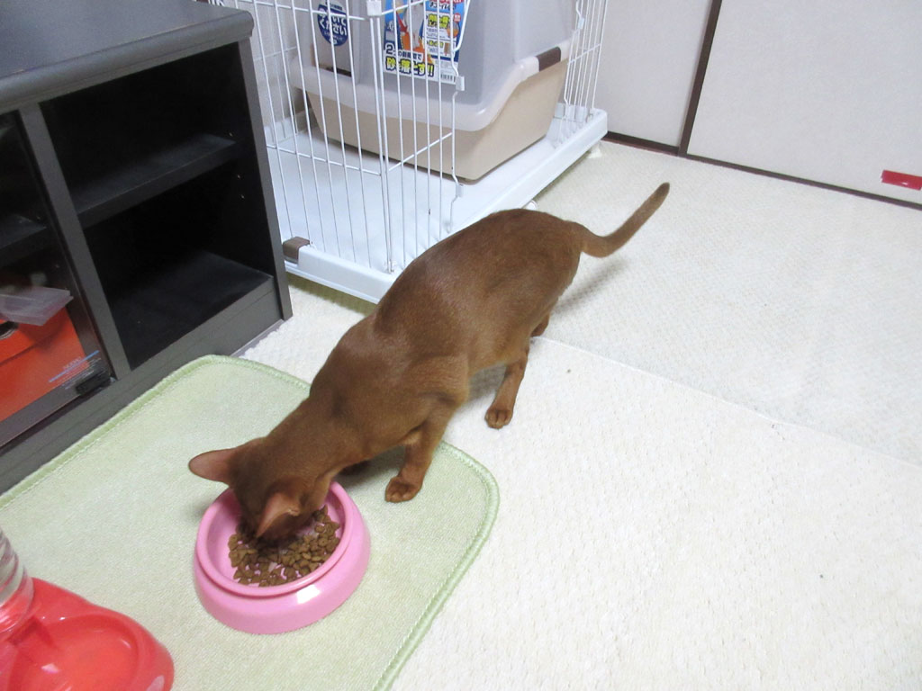 これは、昨日のアビのすけの晩ご飯の様子…、珍しく、ぶれずに写真が撮れたぞ…!