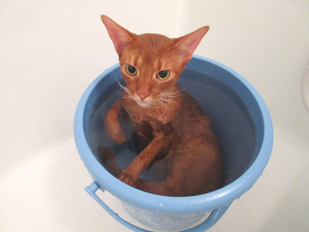 アビシニアンのアビのすけ君のシャンプーの様子です。