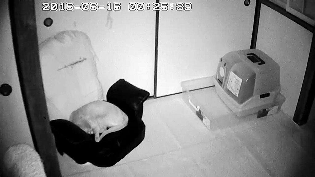 そしてこれは、今晩のアビのすけの様子ですが、アビのすけ、珍しくこんな所で寝てますね…、私が家にいる時は、ほぼ、ここで寝る事はなくなっているのだけど、いつもと違う状況で、アビのすけも若干、心理面に変化があったのかな…。