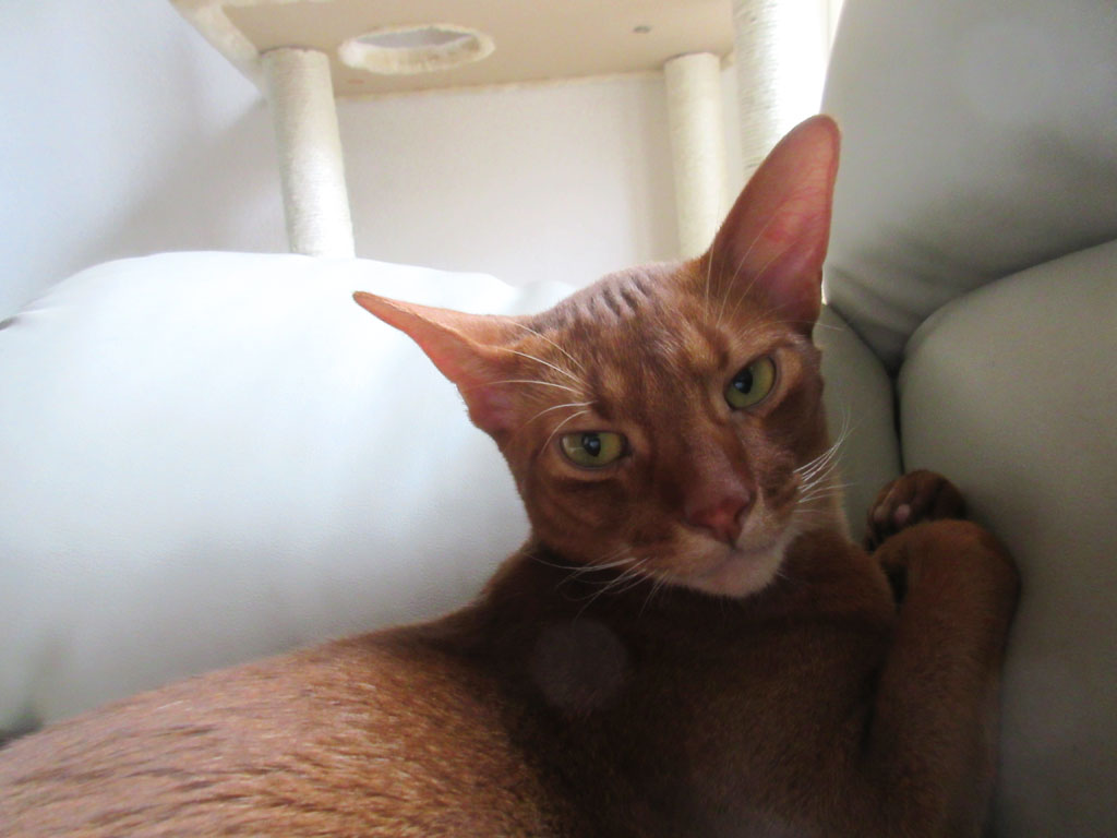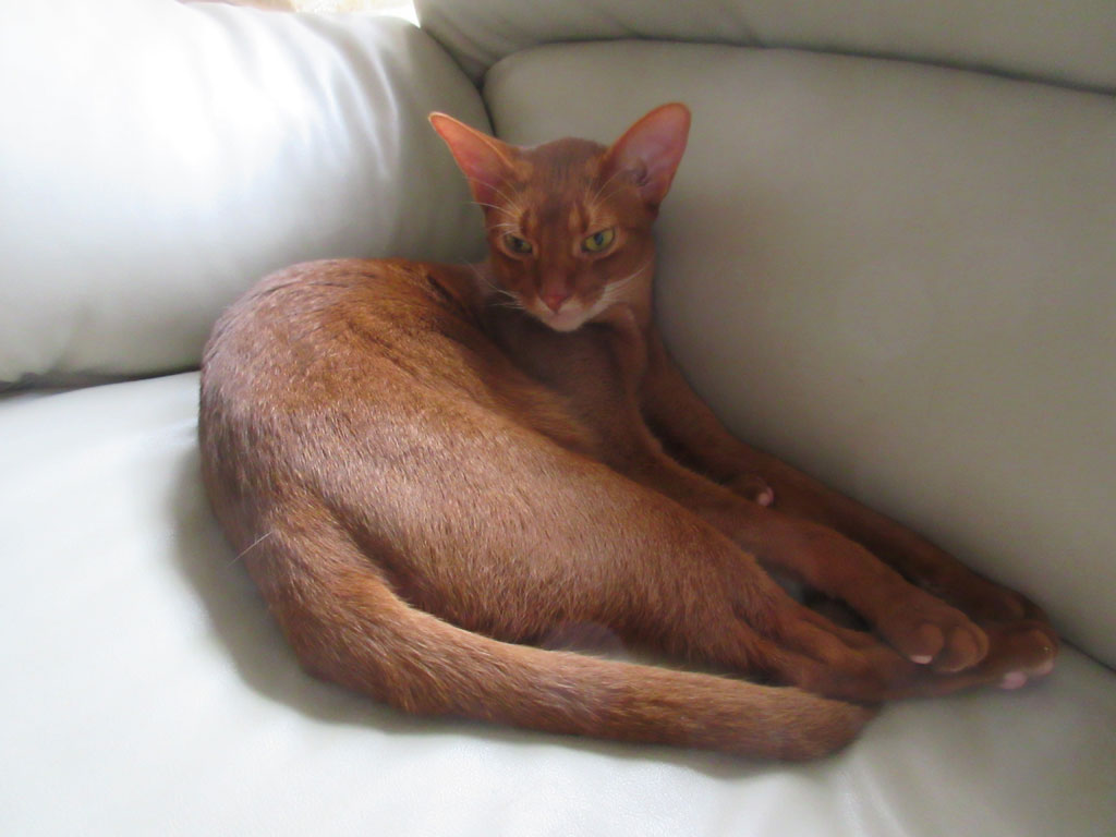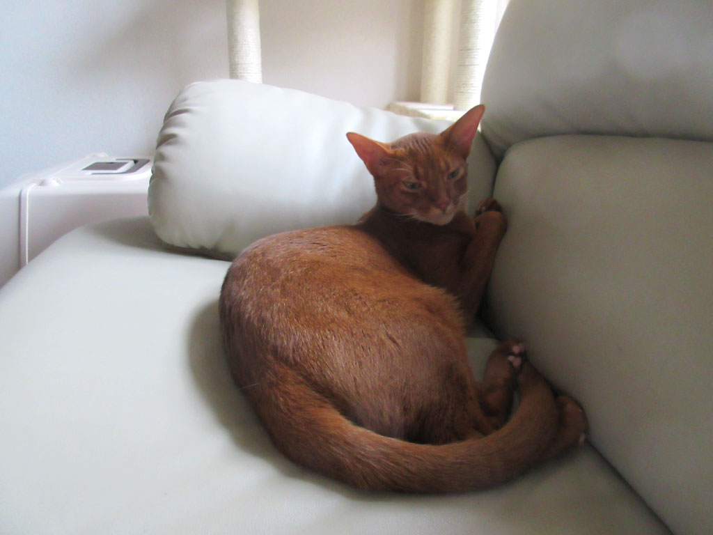 愛らしいアビのすけ。私の汚い足を写すのも憚られたので、私の足をどけて、アビのすけだけを写したのですが、アビのすけは本当に甘えん坊で愛くるしくって、人間大好きなアビシニアン君なのです。