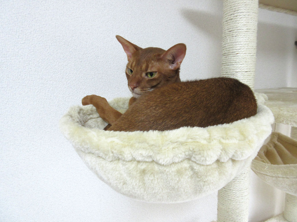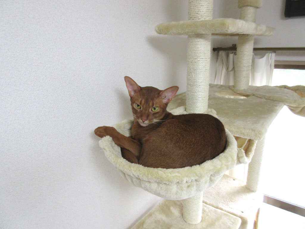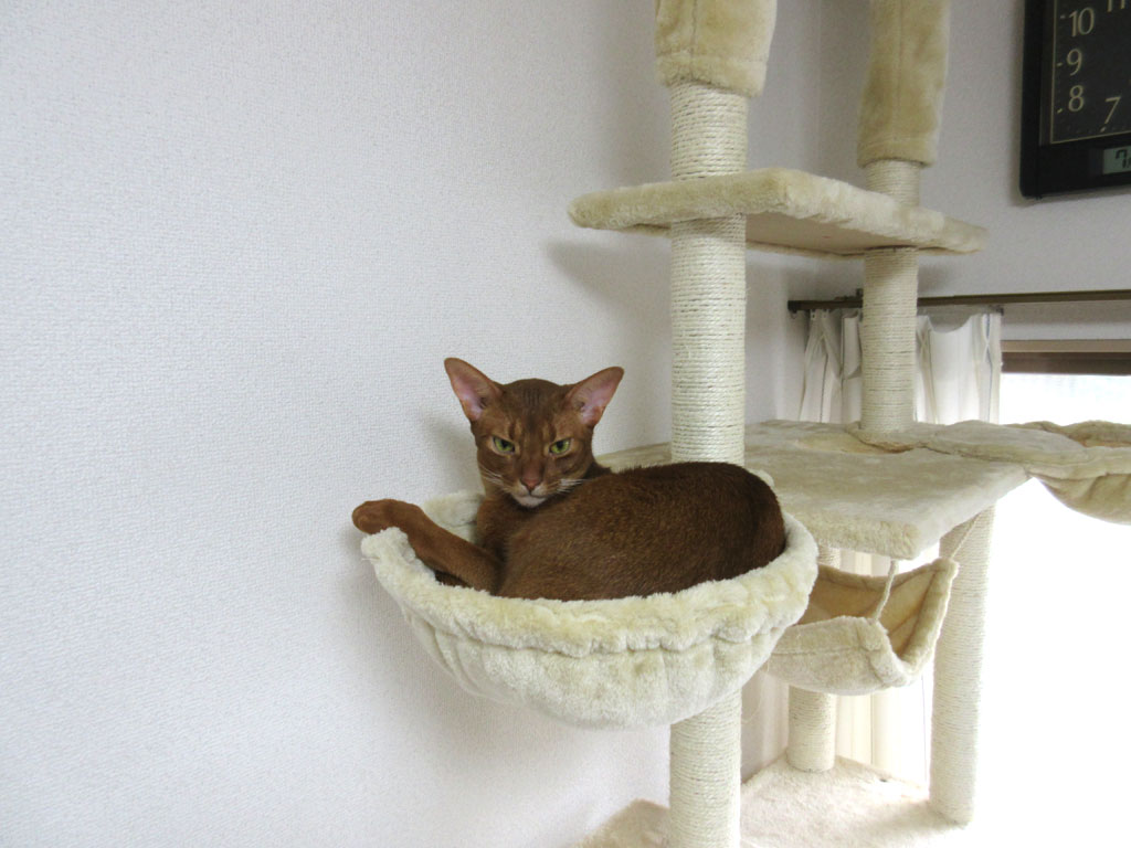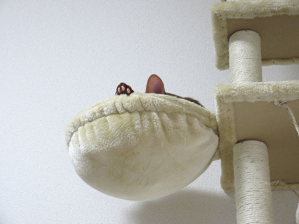 体にぴったりとフィットする場所が、猫って好きなんだろうなぁ〜…、アビのすけが1階にいる時は、ほぼ、このキャットタワーにいて、まるでアビのすけの為のキャットタワーと化している…。