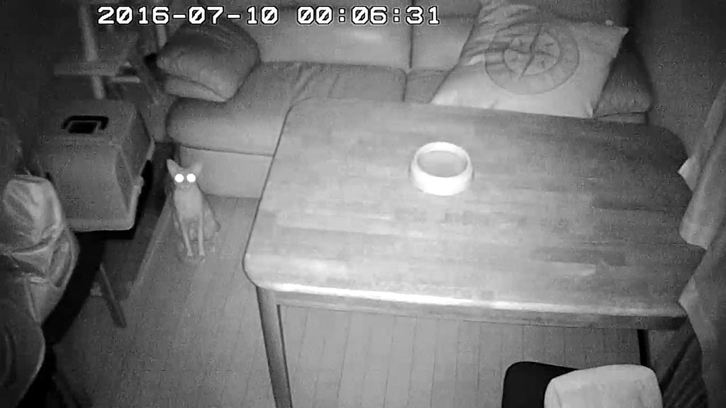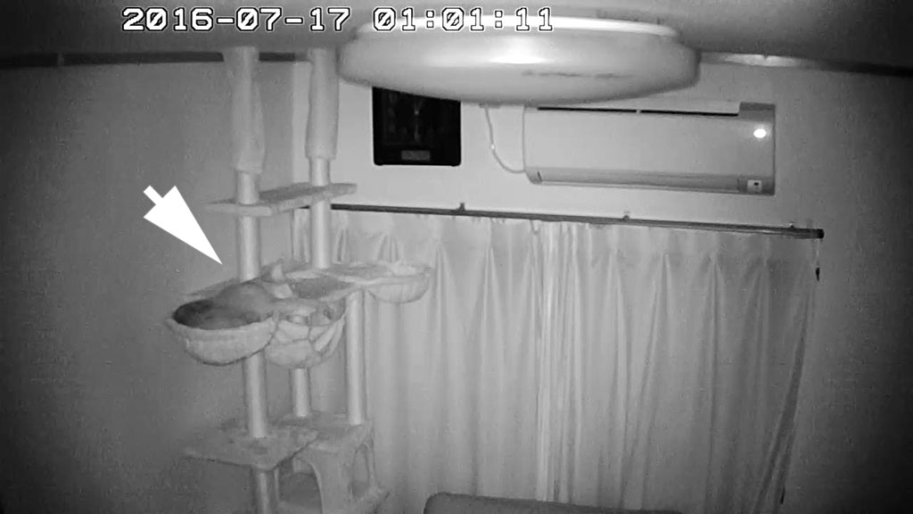 アビのすけ、半目を開きましたね。(暗視モードでは、パッチリと目が開いてたら、もっと爛々と目が光るのです。)