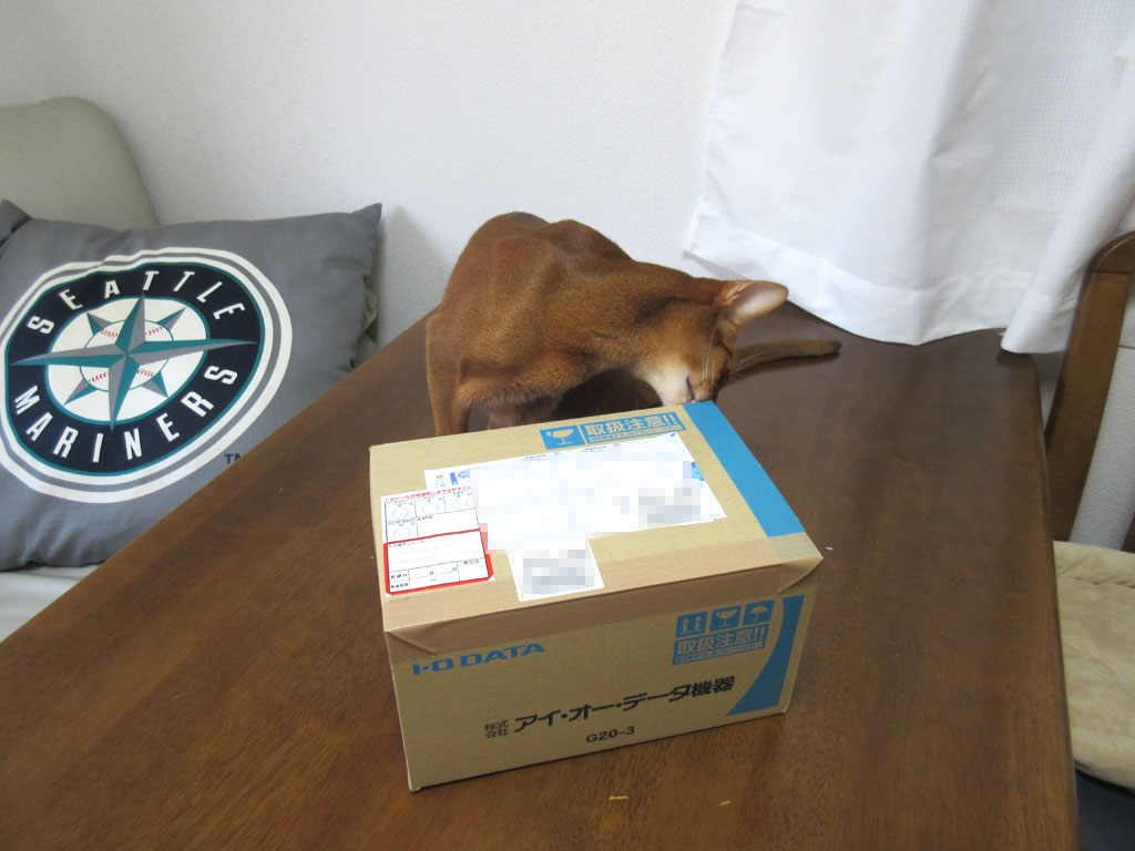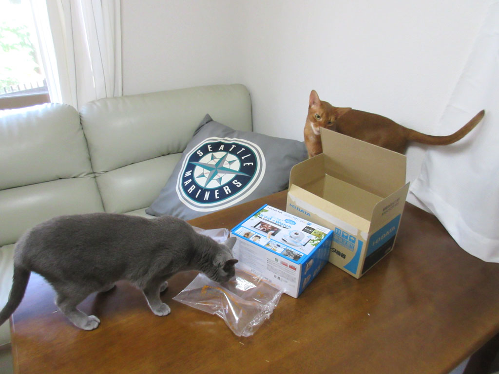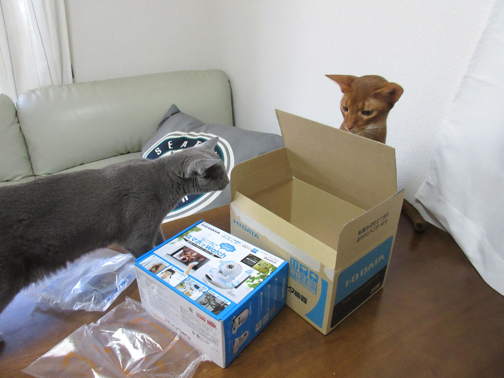 これは昨日の事ですが、おとといに届いたWebカメラを設置する為に、Webカメラが入った箱を取り出して来たのですが、アビのすけ、クンクン、クンクン…。