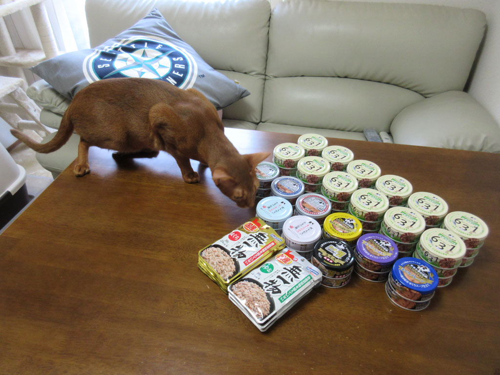 猫たちが集合…、猫たちの缶詰のご紹介。
