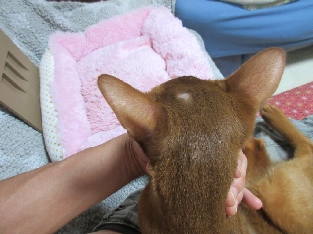 以前、動物病院に行った時に、アビのすけのハゲも診て貰ったのですが、その時には、これは放置しておきましょうみたいな感じで、問題なさ気な感じで先生もおしゃっていたのですが、たまに、こんなハゲがアビのすけの頭に出来るので、気になるなぁ〜…。