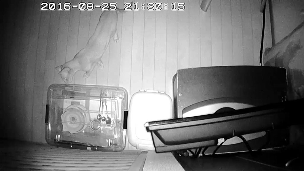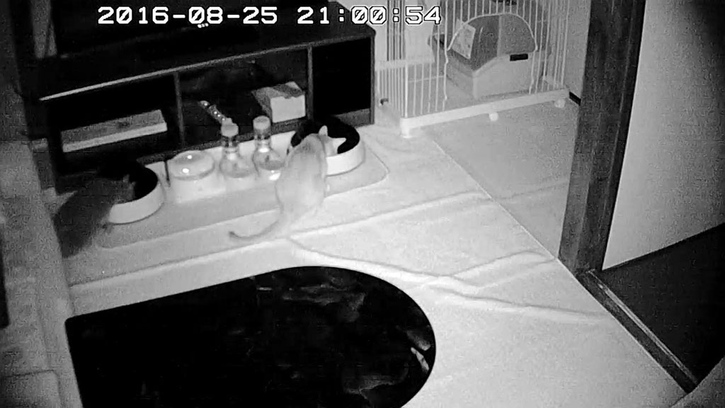 さて、これは昨晩の事ですが、晩9時に、無事、自動給餌器が動き始めてくれた事は嬉しかったのですが、また悪い病気…、アビのすけが強引にロシ子の自動給餌器に顔を突っ込み、ロシ子のカリカリを食べ始めたのです。