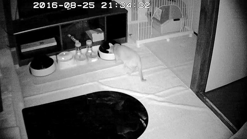 そして、晩ご飯もそこそこに、1階に移動して徘徊を始めたアビのすけ…。