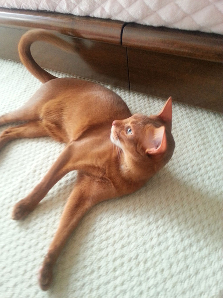 私のマシンに興味津々…、アビシニアンのアビのすけ君。