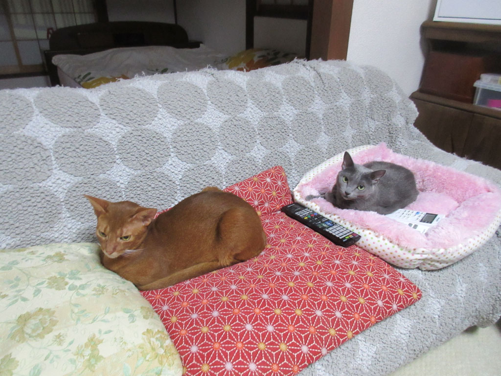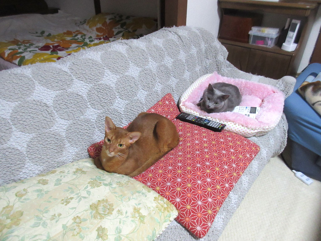 そこそこ近い距離。それでも、そこそこ近い距離で寝ていて、私としては、ロシ子アビのすけの傍で寝てくれているのは、なかなか嬉しい想いなのです。