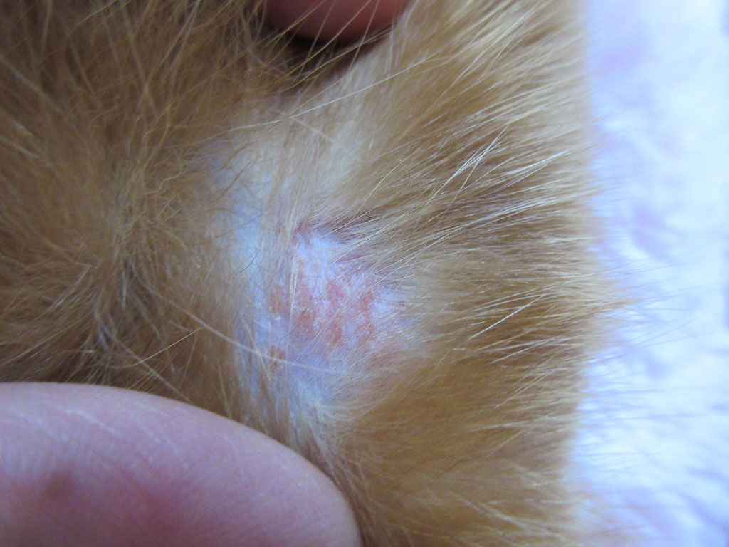そしてこれは、おとといの朝、アビのすけの右膝辺りの皮膚炎の状況をチェックした様子。