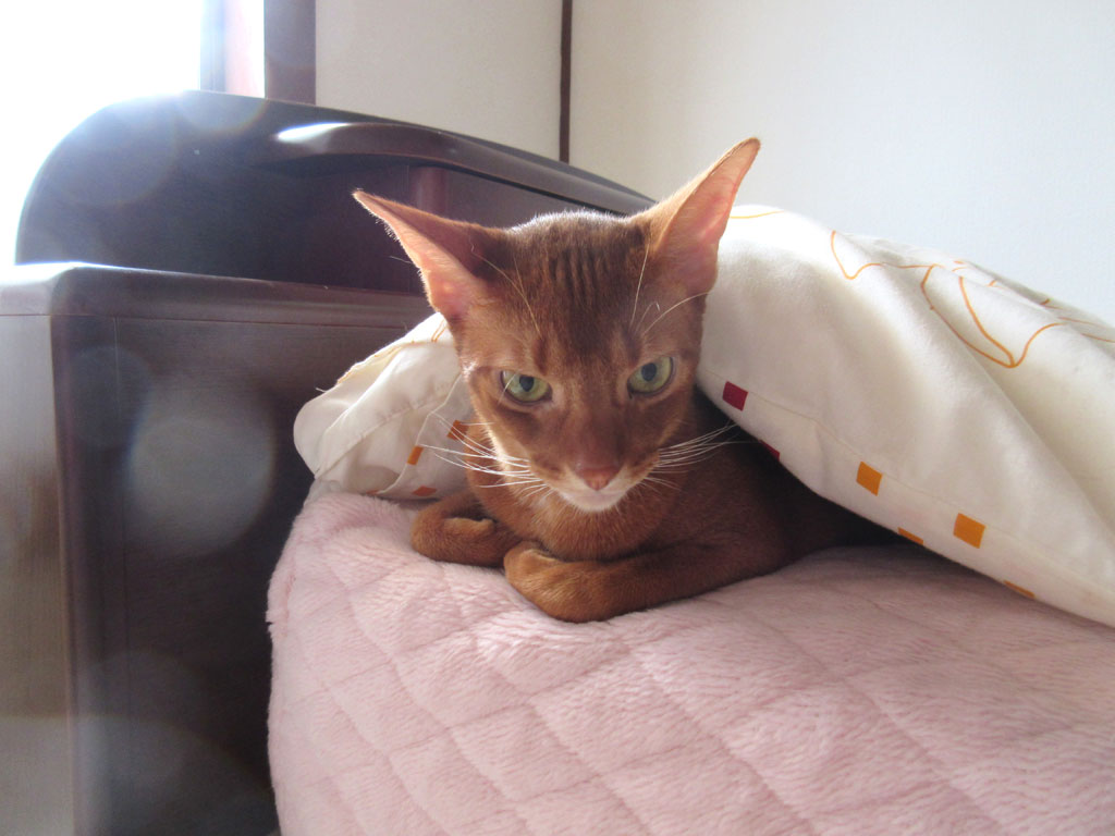 私がベットから出てからも、アビのすけがベットにいたので、布団を掛けてあげたのですが、いつもこんな風におとなしくしてくれていたら、どれだけアビのすけがかわいい事か…。