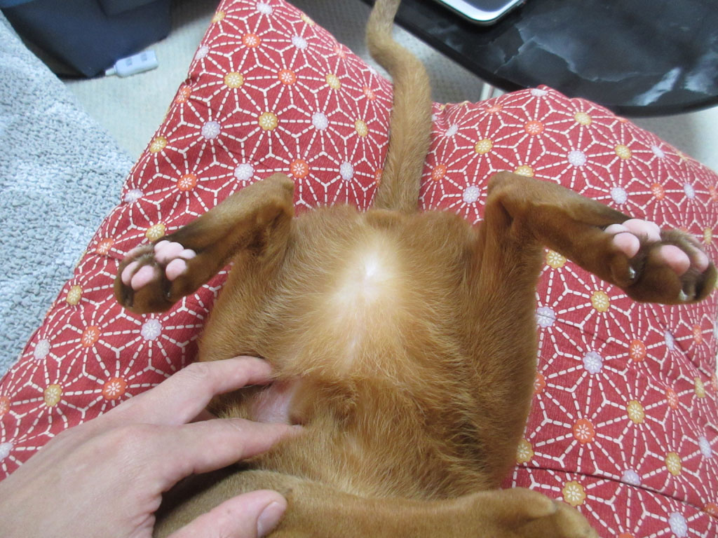 そしてこれは、私が旅行から帰って来た翌日の朝、アビのすけにブラッシングをする前に、皮膚炎の状態を確認した時の写真。