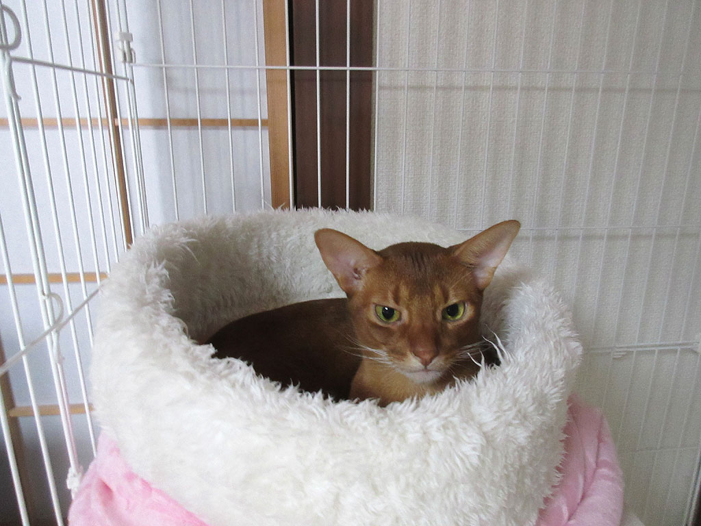 そしてこれは、今朝のアビのすけ…、昨晩はアビのすけ、私の布団で一緒に寝てくれたね…、有難うね、アビのすけ君…。