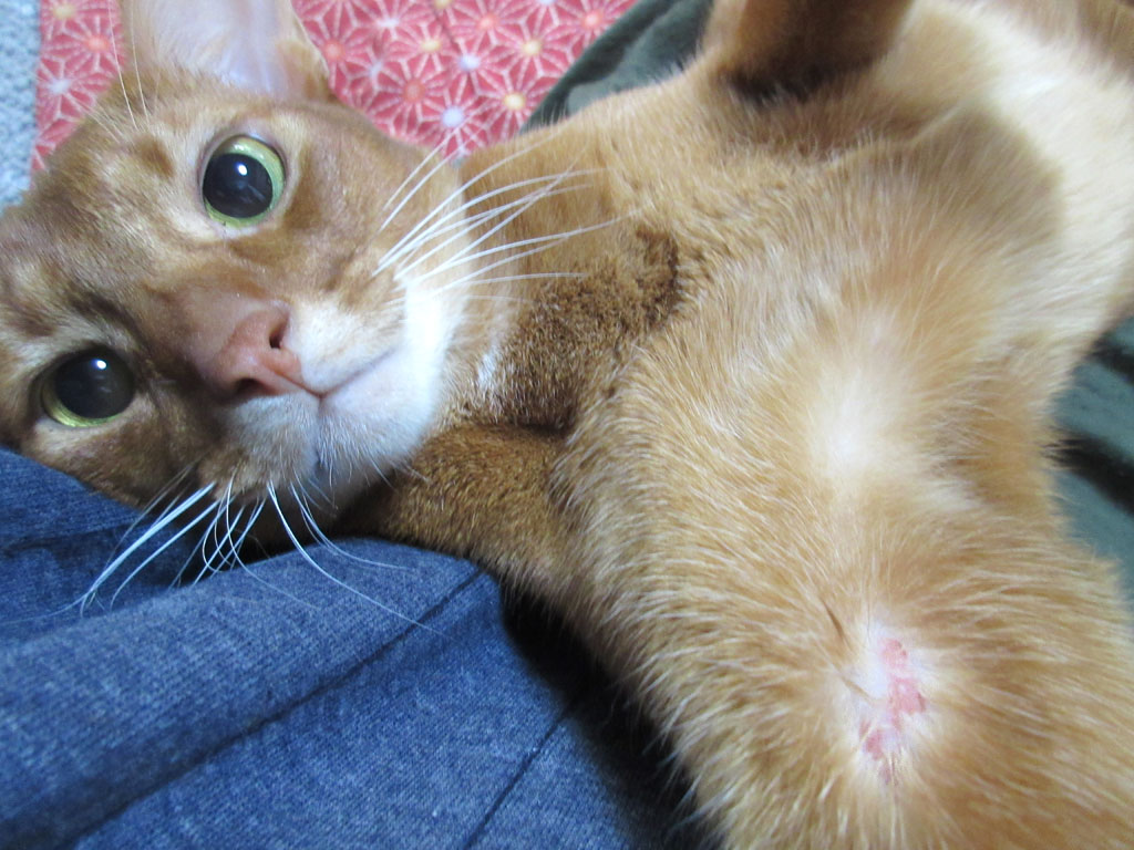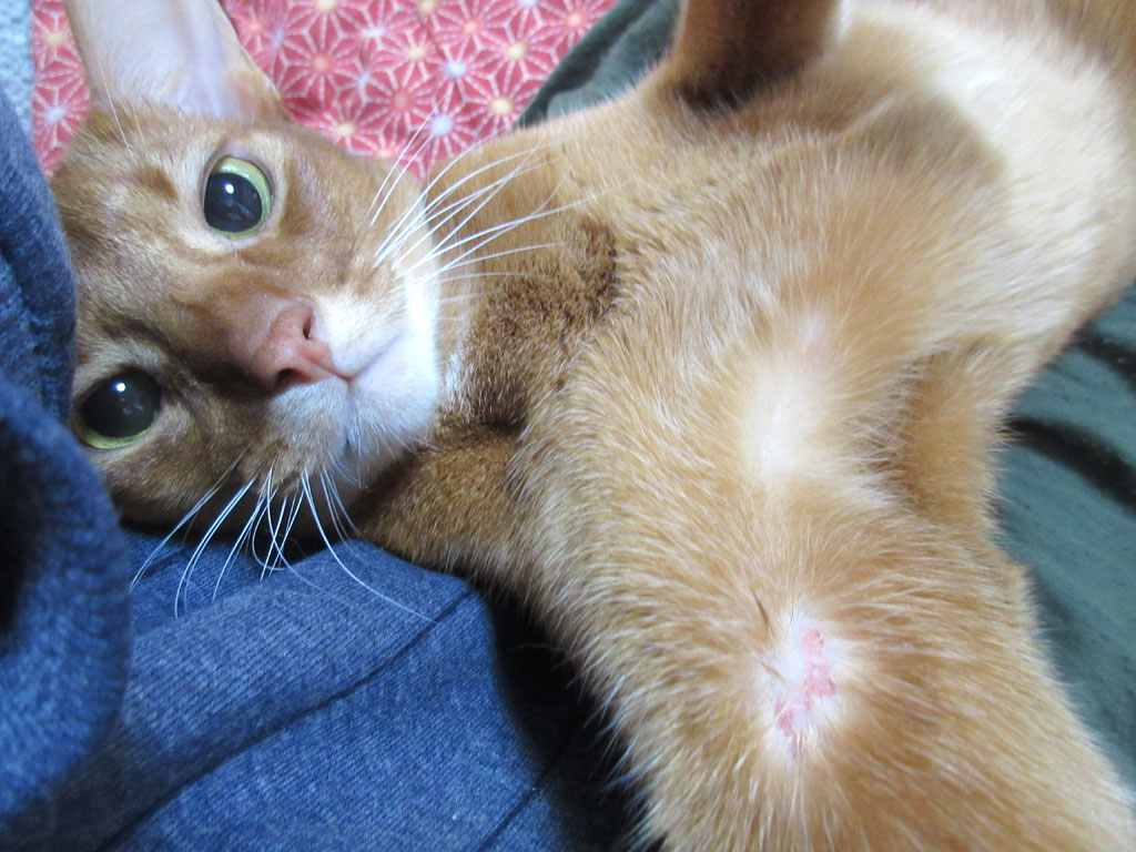 昨日、ふと思い付いて、動物病院に電話をして、アビのすけの皮膚炎の診察の予約を取って、今日の午前11時から動物病院に行って、診察を受けて来たのですが、その前に、先日、アビのすけの皮膚炎をチェックした様子から。
