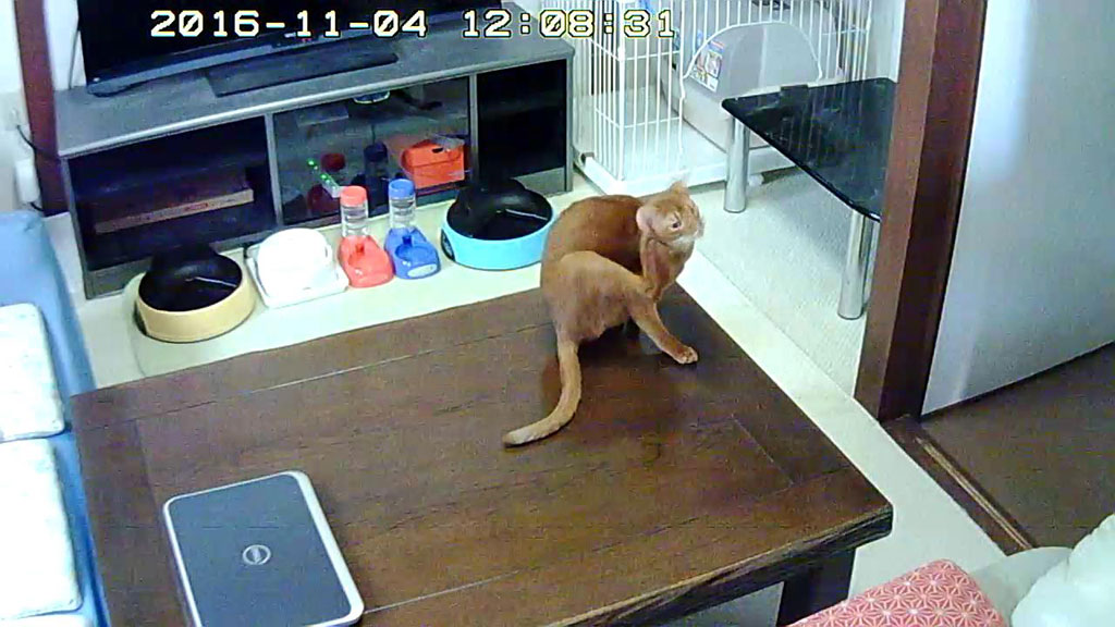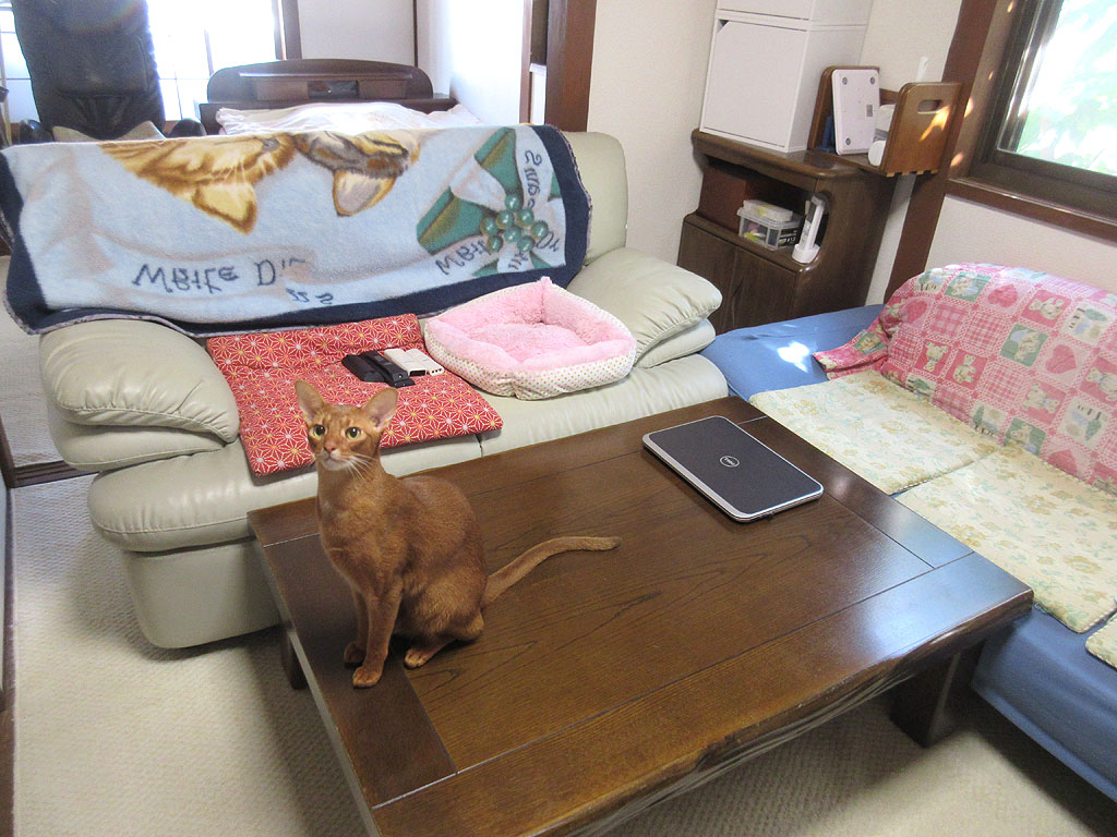 そしてこれは、昨日のお昼間のアビのすけですね…、広い座机の上で、後ろ足でポリポリと耳を掻いていましたよ。