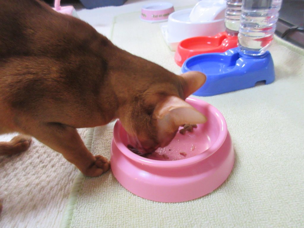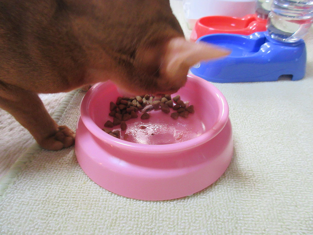 ご飯を出してあげると、いつもと変わらず、元気いっぱいに食べ始めたアビのすけ。