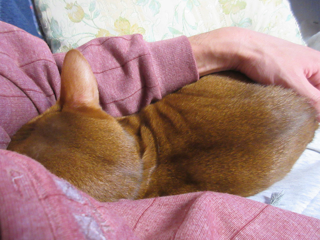 すると、私の傍に寄って来て、私の脇の所に頭を潜り込ませ、すやすやと眠り始めたのです。