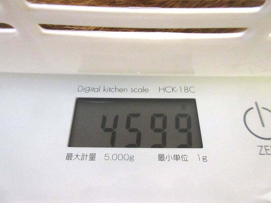 なんと、アビのすけの体重は4,599gで、4.6kgを割ってしまった…、意外な結果に私はビックリ…。