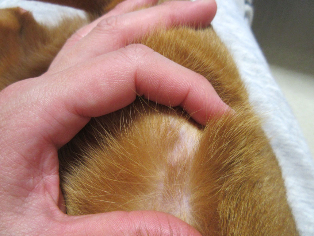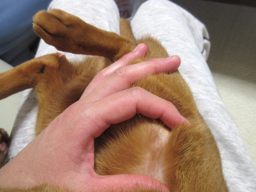 まずは、当初から出来ていた、アビのすけの左足の膝の内側辺りに出来ていた皮膚炎…、完治…!