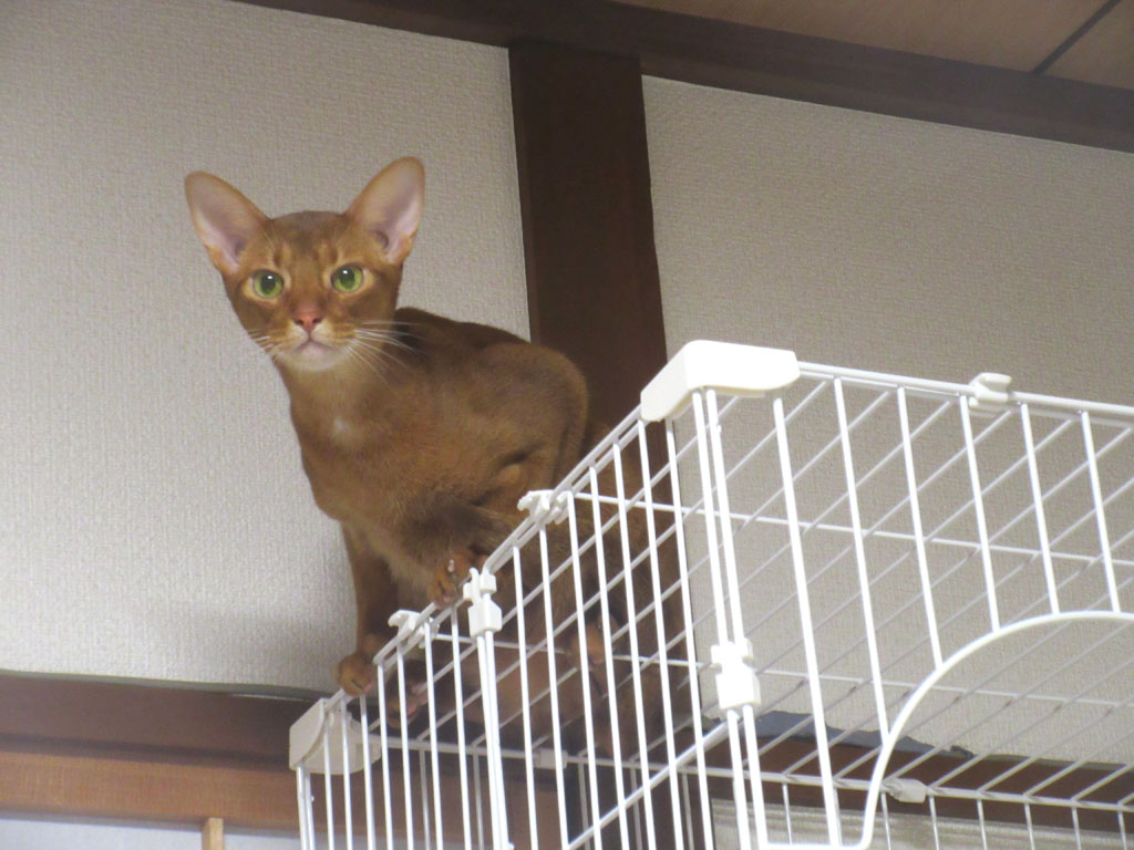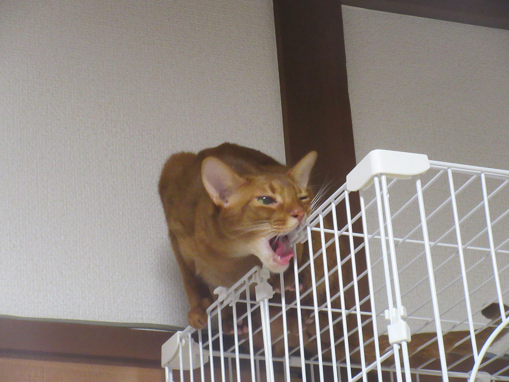 悪がきのアビのすけ。昨日のブログに引き続きまして、今日のブログも、アビのすけがケージの天井に上って悪戯をしていたお話です。