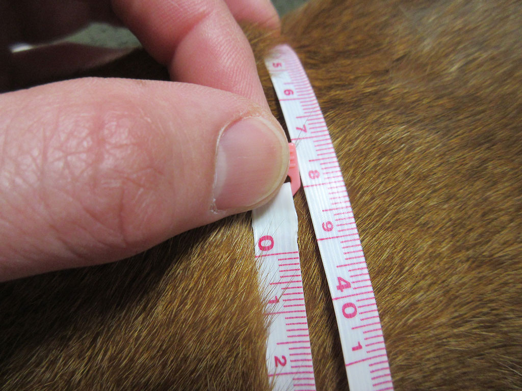 そして、アビのすけの第9肋骨周りを測定…、いつもの事ですが、第9肋骨周りを測るのは大変で、アビのすけは動き回るので、私のだみ声で黙らせながら測っていたので、正確に測れているとは言い切れません…。