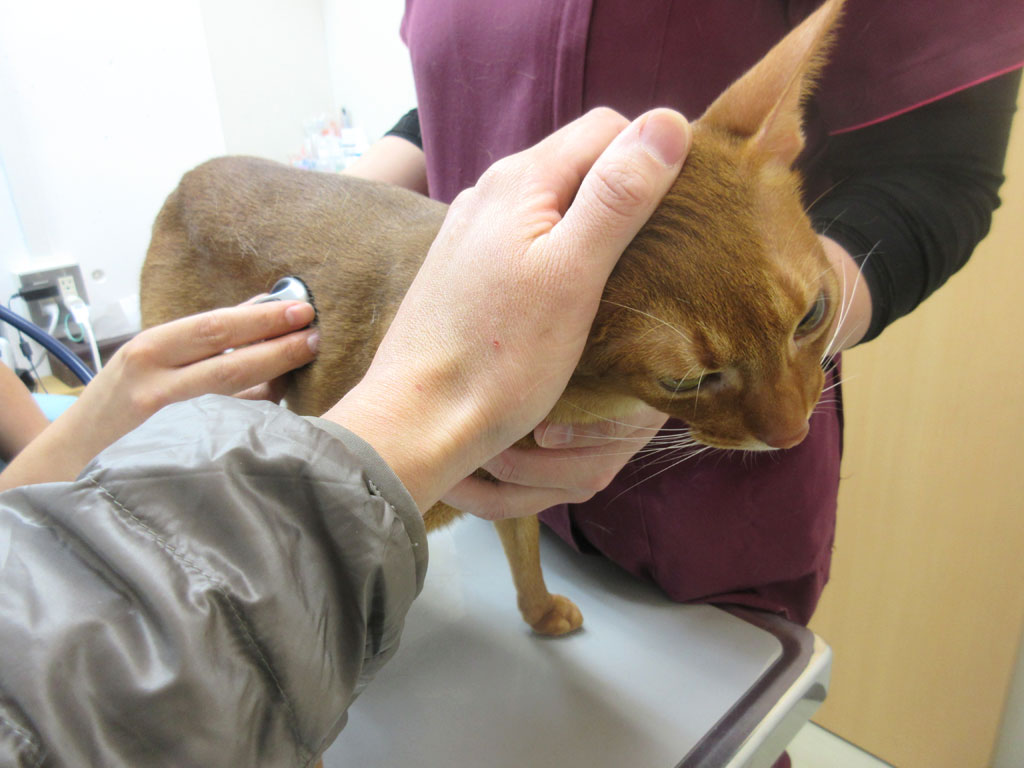 そして次に、聴診器でアビのすけの心臓や肺の音を聞いて頂きました。