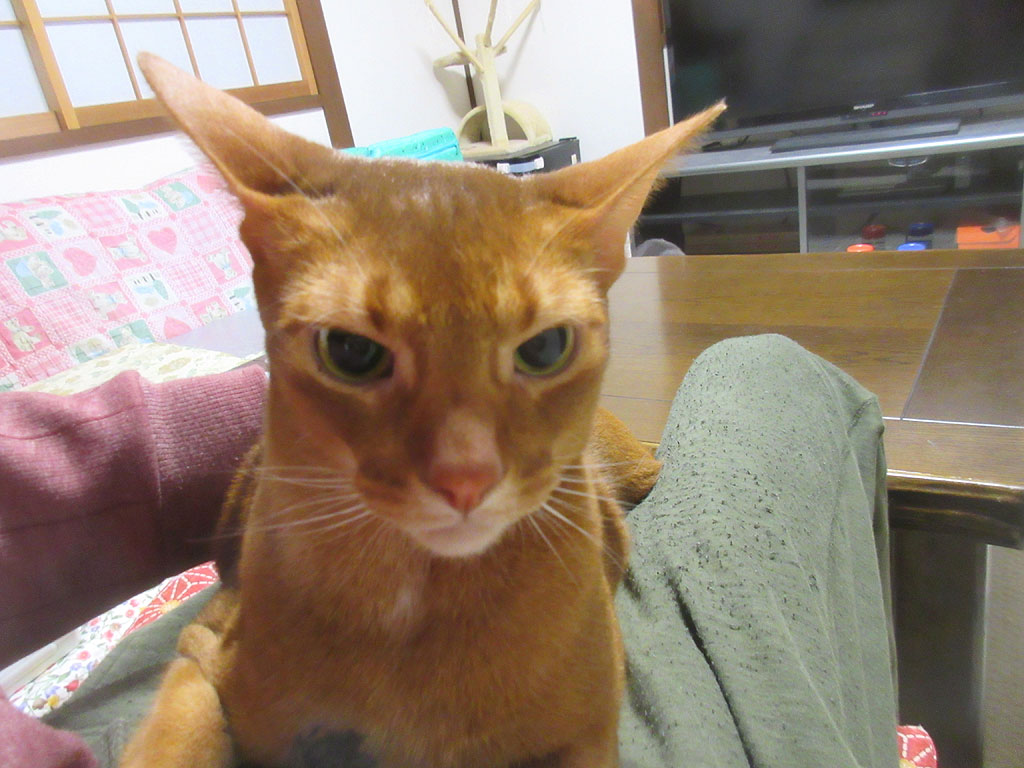 とにかく、ほんま、やかましいアビのすけ。 コメントを残す これ、今日の晩ご飯前のアビのすけ君…、毎日、朝ご飯前、晩ご飯前は、アビのすけは本当にやかましいのです。 私が忙しくて、猫たちのご飯を準備出来ず、猫たちを待たせる事があるのですが、アビのすけは、30分でも、1時間でも、ずっと鳴き続けるのです。 今日の晩ご飯前も、アビのすけはうざい位に鳴き続け、間もなくご飯を食べる事が出来そうだと、わくわく、焦って? ずっと動き回っていたのです。 とにかくこいつは、ほんと、憎めない奴なんだよなぁ~…、人懐っこい奴なんだぁ~、笑える…。 そして、私の膝の上で、じぃ~っとご飯待ちのアビのすけ…、よしっ、アビのすけ…、ご飯を食べさせてやる…! そして、晩ご飯にあり付けたアビのすけ…、1日の中で、間違いなく、ご飯を食べている時が、一番大好きなアビのすけです。