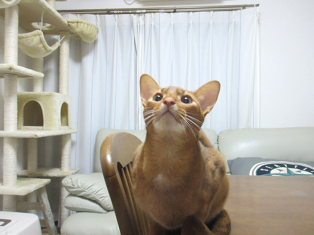 上を向いてたアビのすけ…、と言うか、私が上を向かせたのですが、アビのすけは、元気いっぱいなアビシニアンの男の子なのです。