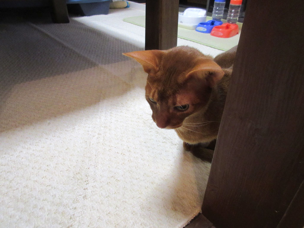 ちょこちょこしているアビのすけ。私が1階に下りて行った時には、アビのすけはケージの3階の猫ベットで寝ていたのですが、数分が経って戻って来たら、アビのすけはこの始末…、ほんと、好奇心が旺盛というか、落ち着きがないというか、ちょこちょこしているというか…。