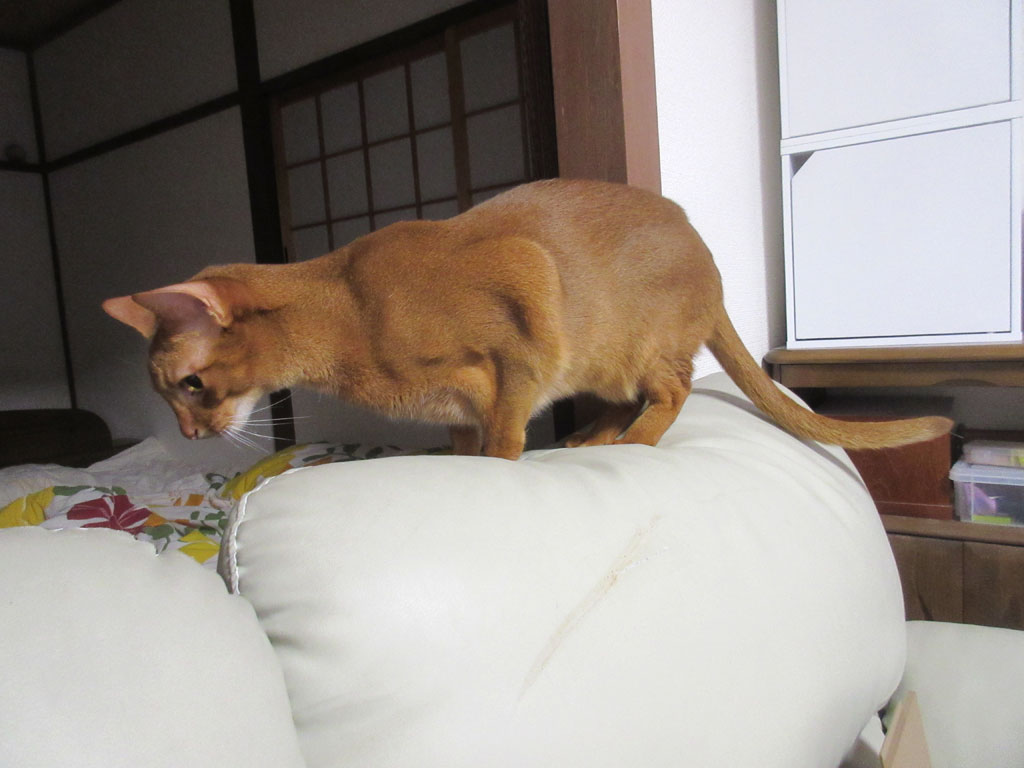 穏やかなんですけど、芯の太いロシ子から私の膝の上を奪還出来ず、部屋の中を動き回っていたアビのすけ君。