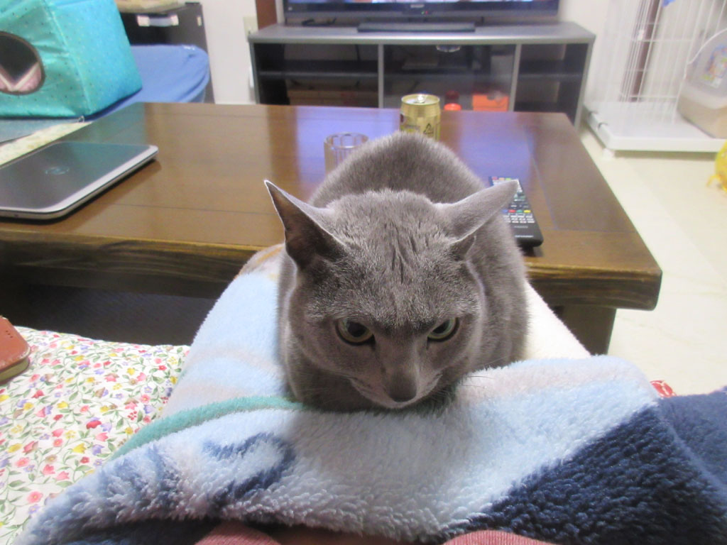 そして、私の膝の上のロシ子ちゃん…、アビのすけともギュッとハグをしたかったんだけど、ロシ子が私の膝の上を占有していて、そして、アビのすけは男の子だから、少々、放ったらかしにしておいても良いだろうとの考えから、若干、ないがしろにされがちなアビのすけ君でして…。(汗)