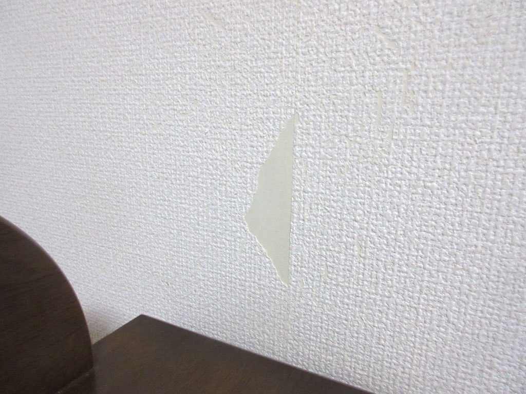 クロスが破れてた。話は変わりますが、これ、4日前の晩遅くの事、そろそろ私、寝ようかと思い、ベットに来て布団をめくったら、ベットの向こう側のクロス(壁紙)が剥がれていたのを発見して…。