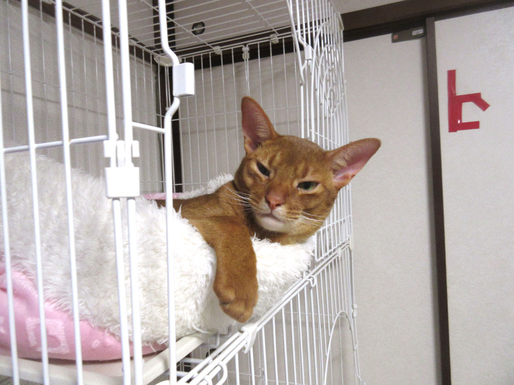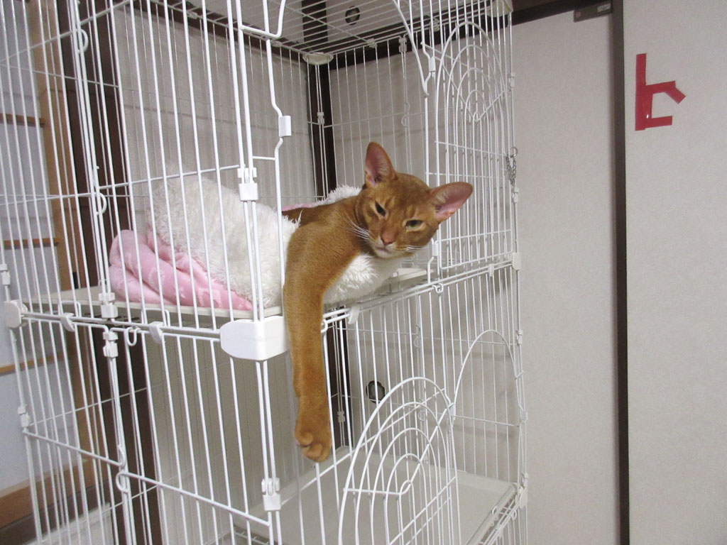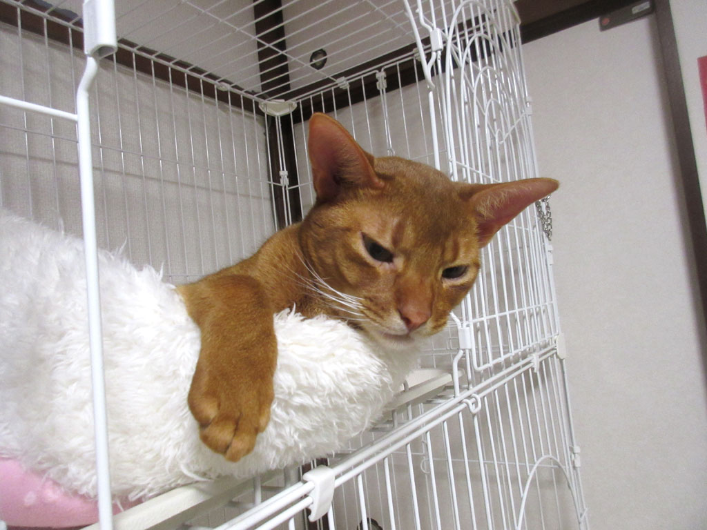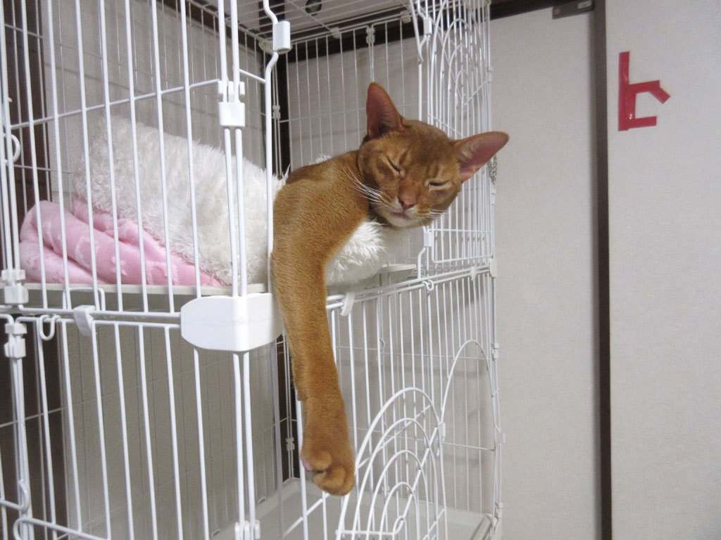 これは、おとといの晩のアビのすけ君ですが、何ともふてぶてしい寝方のアビのすけ君…。