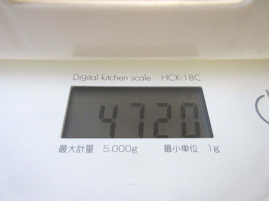 今朝のアビのすけの体重は4,720g…、ロシ子の体重と比べると、約1.2kgも重いけど、男の子でもあるし、アビのすけは大きいので、これ位ならOK。