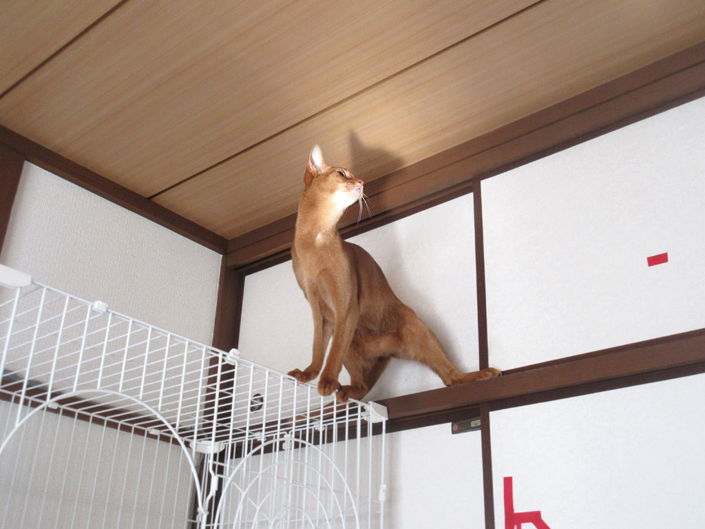 天井に光の影が映っていますが、午前中は、アビのすけは、光の影を探して、はしゃぎまくって、とってもやかましいのです。