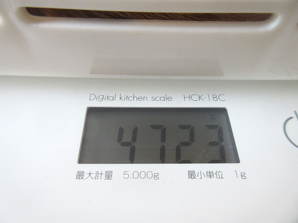 アビのすけの体重は4,723g。この日のアビのすけの体重は4,723gと、骨太、筋肉質な、しっかりとした体重。