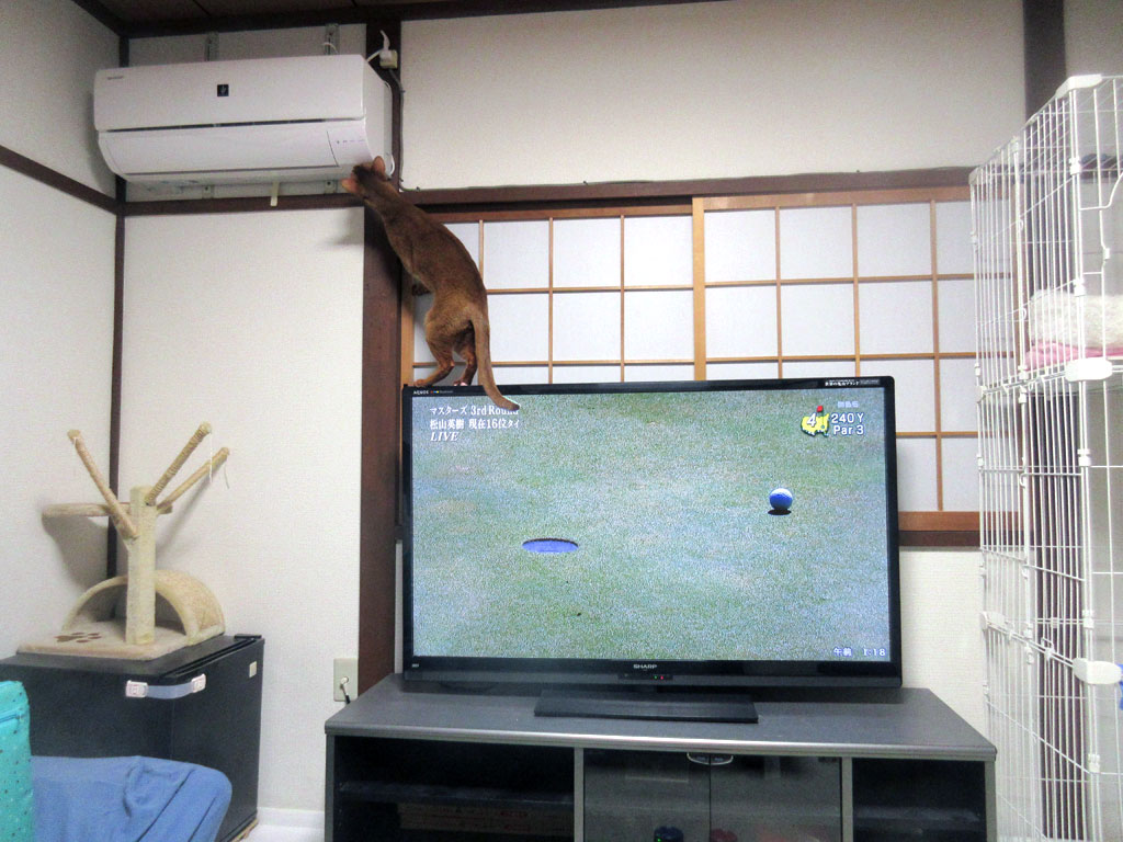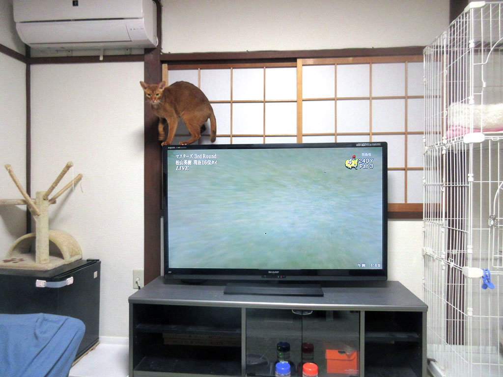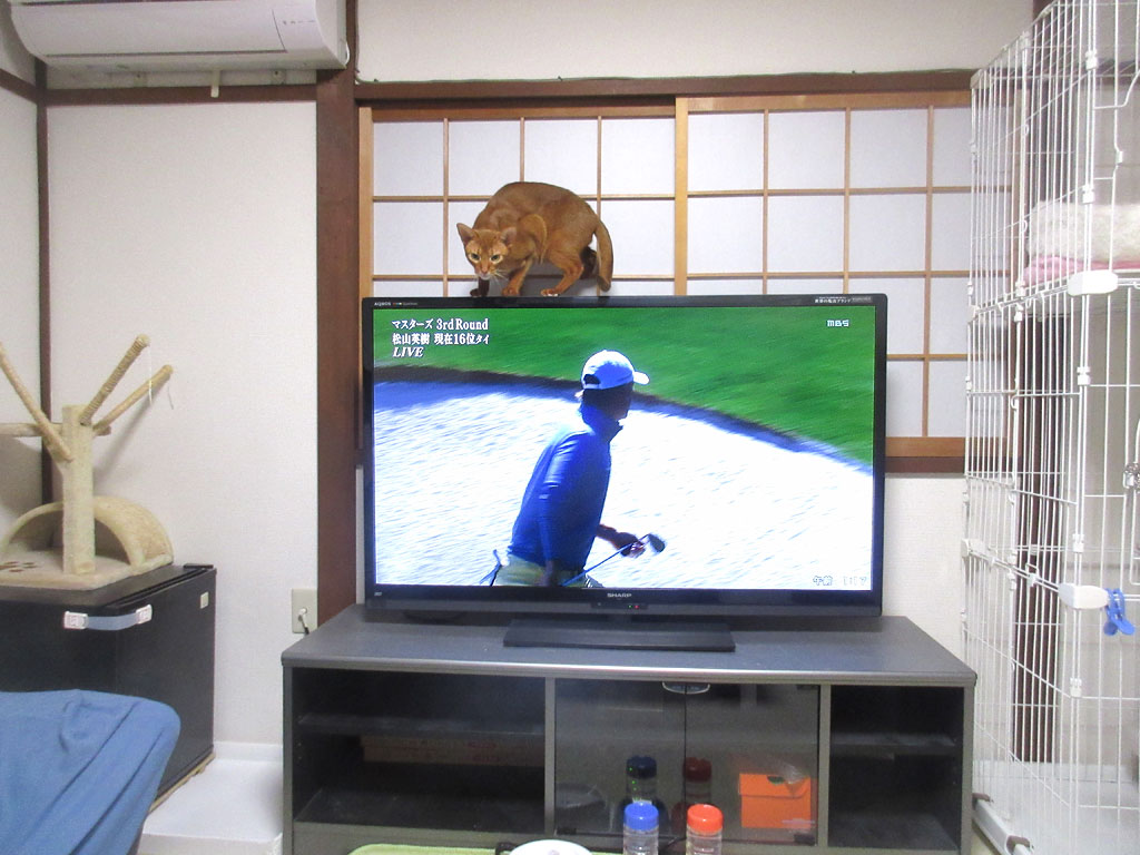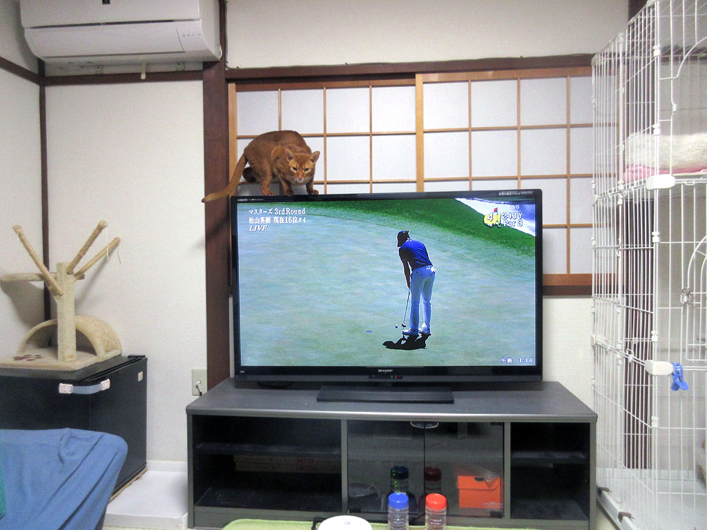 と言うか、アビのすけはただ、テレビの中でゴルフボールが動いている事に、獲物を見つけたかの如く、野生の本能が目覚めただけの事だったと思うのですが…。