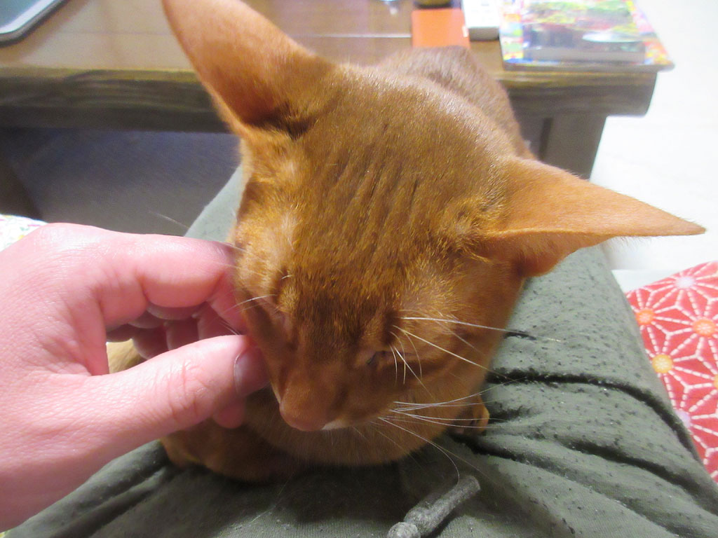アビのすけの頬骨の辺りをスリスリ…、これ、アビのすけ、とっても気持ち良さそうにするのです。